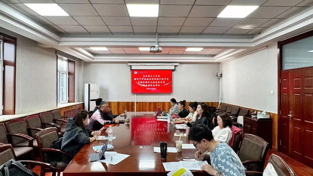 为深入推进铸牢中华民族共同体意识教育有机融入中国近现代史纲要课程教学,提升两门课程的教学协同性与理论深度。4月10日,铸牢中华民族共同体意识教研室与中国近现代史纲要教研室在新华校区行政楼二楼开展联合集体备课活动。马克思主义学院党总支书记、院长夏志刚及教学督导和两教研室全体教师参会,围绕专题教学重难点展开深入研讨。