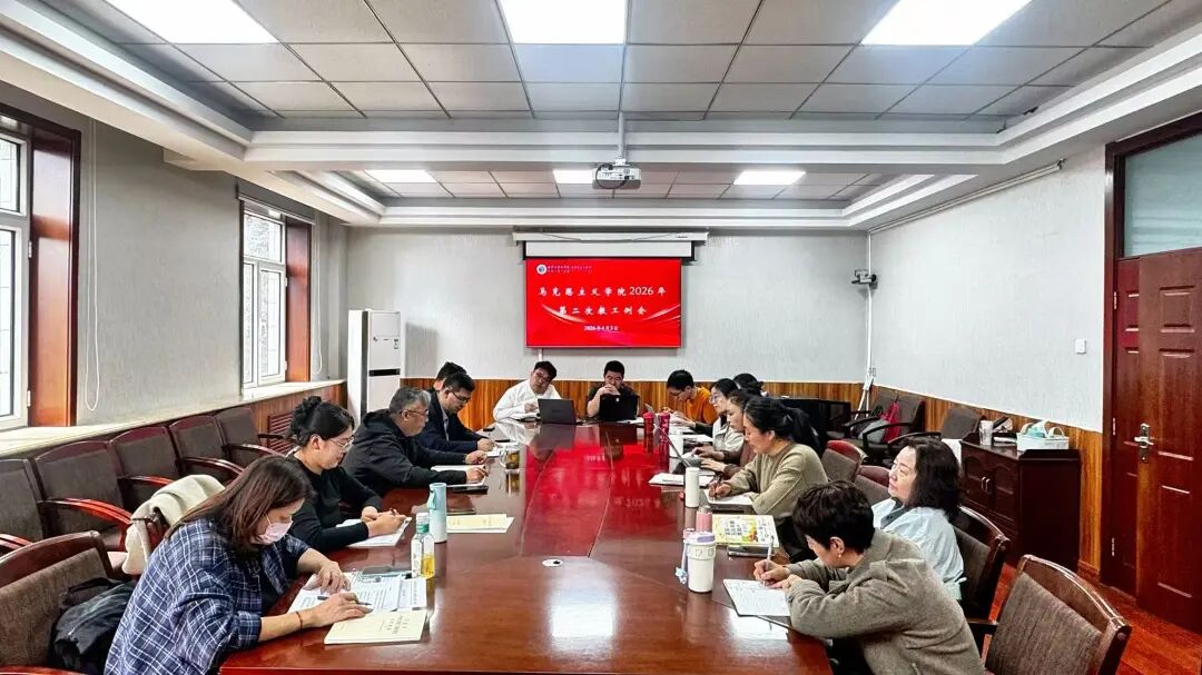4月3日,马克思主义学院在新华校区行政楼二楼会议室召开2026年度第二次教工例会,全体教师参会,会议由学院党总支书记、院长夏志刚主持。
